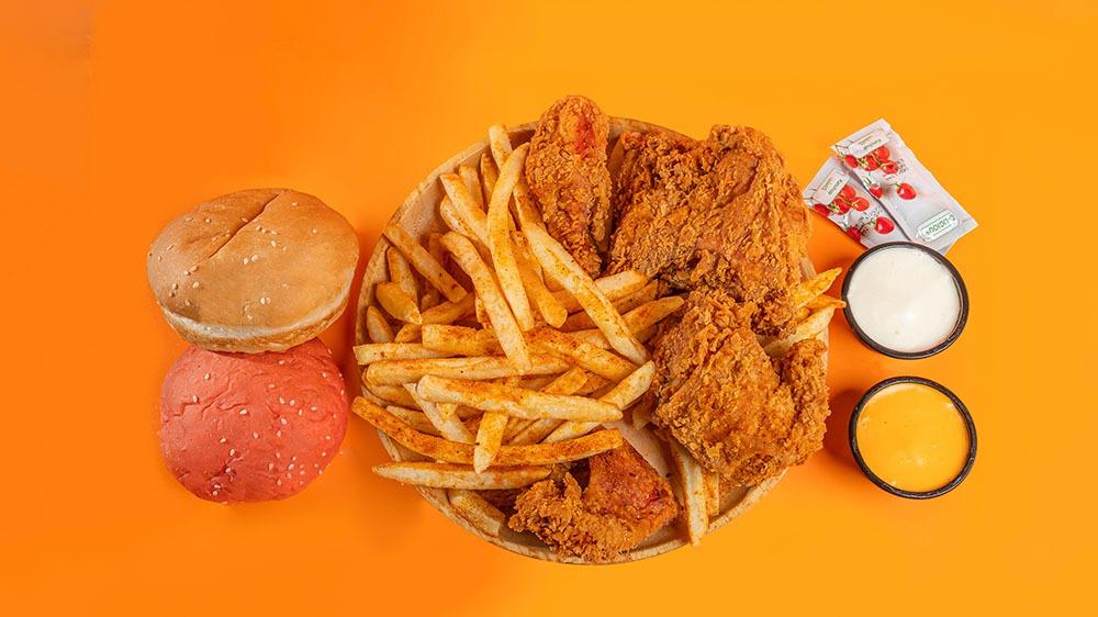 قطع 4 بروست + بطاطس + ثوم عادي + ثوم حار + خبز برجر 2 + كاتشب 2