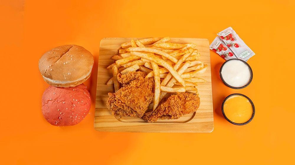 (Broast 2 pieces+110g fries+regular garlic sauce+spicy garlic sauce+2burger buns+2ketchup)